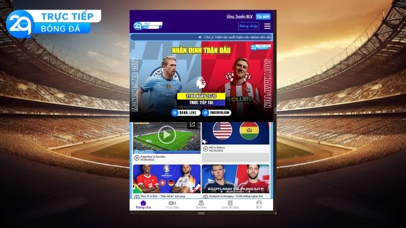 Trên trang chủ, bạn sẽ thấy danh sách các trận đấu đang diễn ra và sắp diễn ra. Chỉ cần chọn trận đấu mà bạn muốn xem, và 2qlive sẽ ngay lập tức đưa bạn đến trang xem trực tiếp với chất lượng cao nhất.